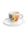 Deze unieke collectie, ontworpen door kinderen onder de twaalf jaar, straalt een aanstekelijke vrolijkheid en frisheid uit. De magische verwondering van de kinderlijke blik, vrij van culturele invloeden, komt tot leven op de zes espressokopjes.